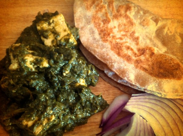 Palak Paneer. I have never made Palak Paneer until today. Inspired by my toddlers “I’ll eat anything green”, I decided to give this vegetarian curry a try. Palak Paneer is as green as it gets. My puppy girl loved the saag! I adapted this recipe from Indian Simmer by Prerna. I love her simple indian cooking and this recipe was easy to follow.