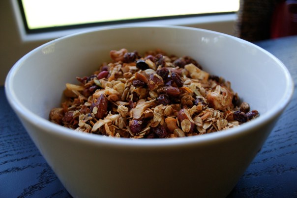 I love granola that is lightly spiced and sweetened with lots of nuts and fruit. And this recipe fits the bill and is super simple. No reason to buy granola anymore, especially as this is tastes far better than any I’ve bought.