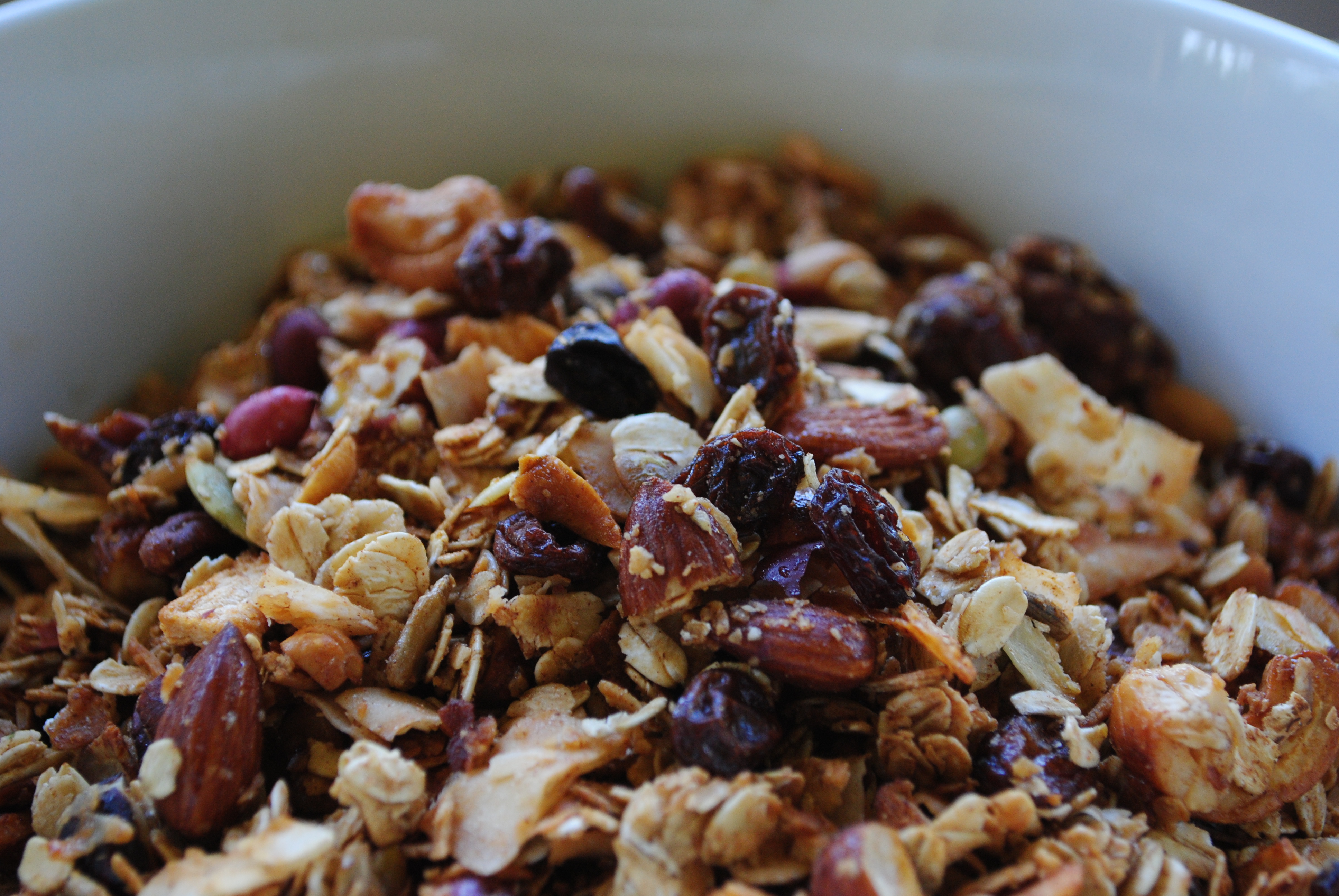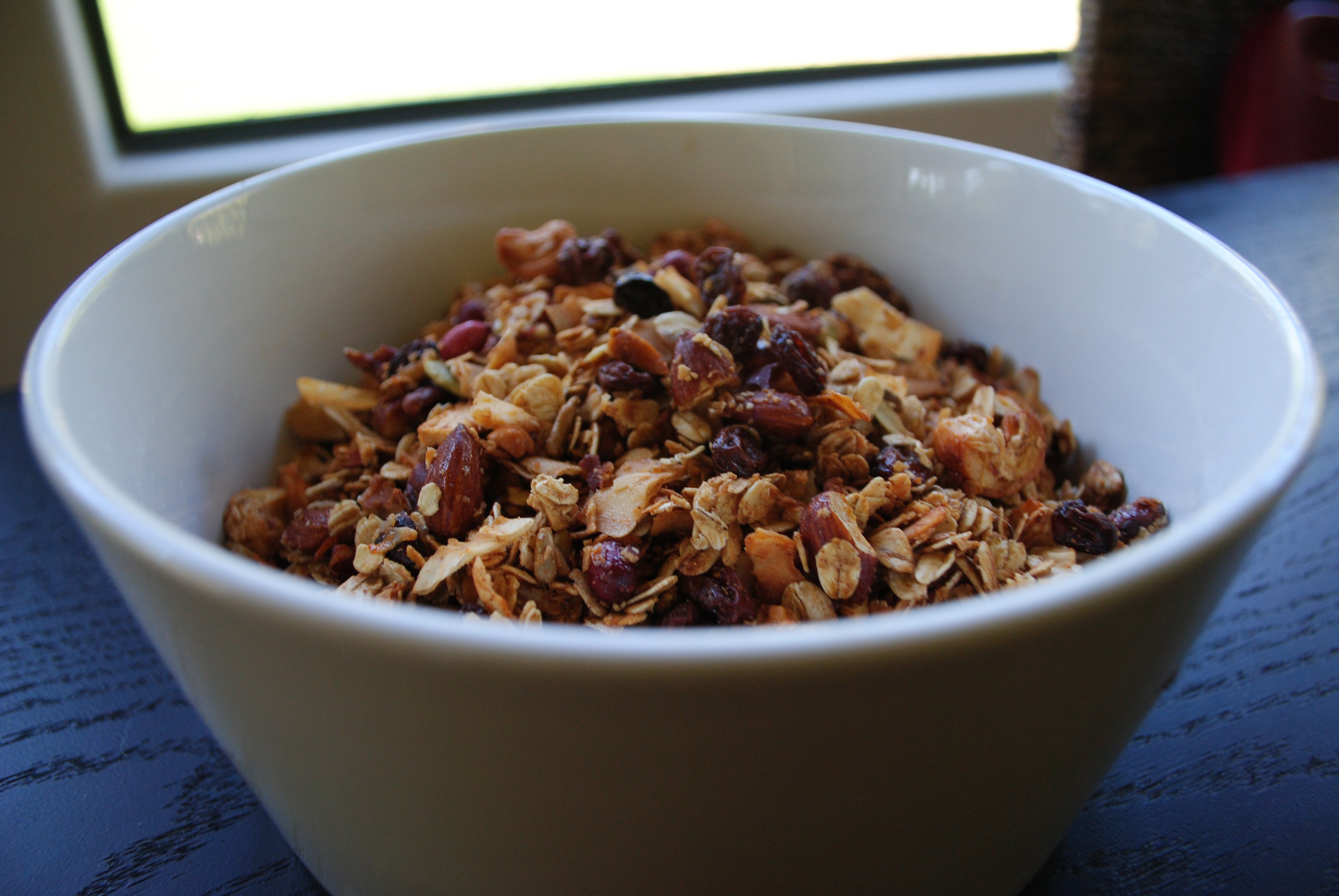 I love granola that is lightly spiced and sweetened with lots of nuts and fruit. And this recipe fits the bill and is super simple. No reason to buy granola anymore, especially as this is tastes far better than any I’ve bought.