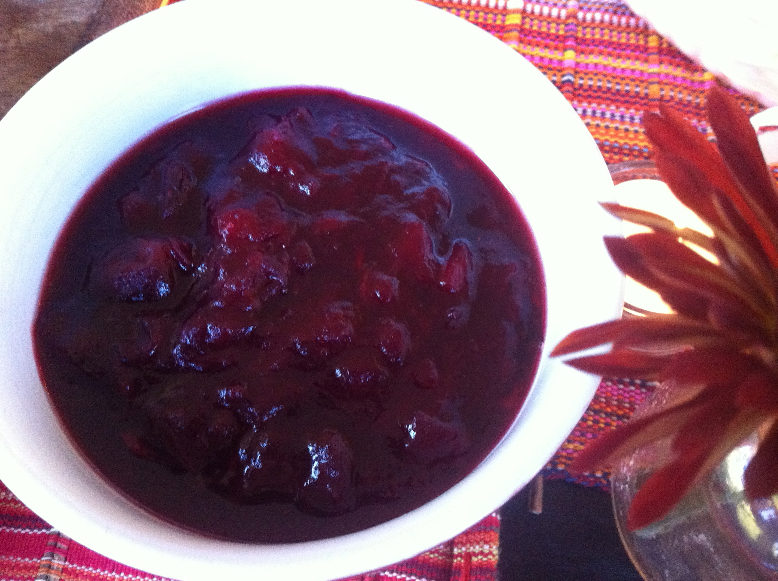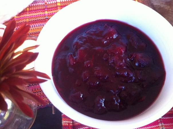 Cranberry sauce or cranberry chutney? Cranberries are the perfect accompaniment to turkey. Bright, bold, sweet, tart! I made a cross between a chutney and sauce to go with our turkey this year. I added some apple along with apple cider to increase the fruity flavors and for spice used star anise and a cinnamon stick.. the aromas were divine. Since the recipe made about 2 1/2 cups, there’s plenty left over for some cheese cake or tarts.