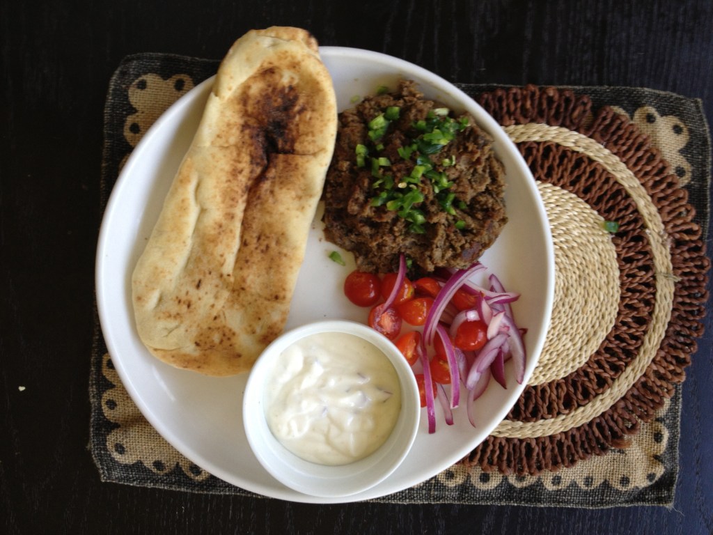 Chewy noodles mixed with a meat curry, coconut based curry and the best part – the condiments of cilantro, green chillies, crispy noodles, red chilli flakes. I’ve had multiple variations of khousey, with the two curries mixed and cooked together, the coconut curry made with yoghurt (kadhi), but our favorite growing up was the one made at my friend Maria’s house. This is that coveted recipe, tweaked a bit, but in essence the same…. still incredible! The aroma of this khousey recipe brought back days of sitting at our friends house, putting on lipstick because we were sad, first loves, careers, weddings and now our kids playing together. Here’s to my girls! I hope our daughters or sons make this one day and remember their khalas.